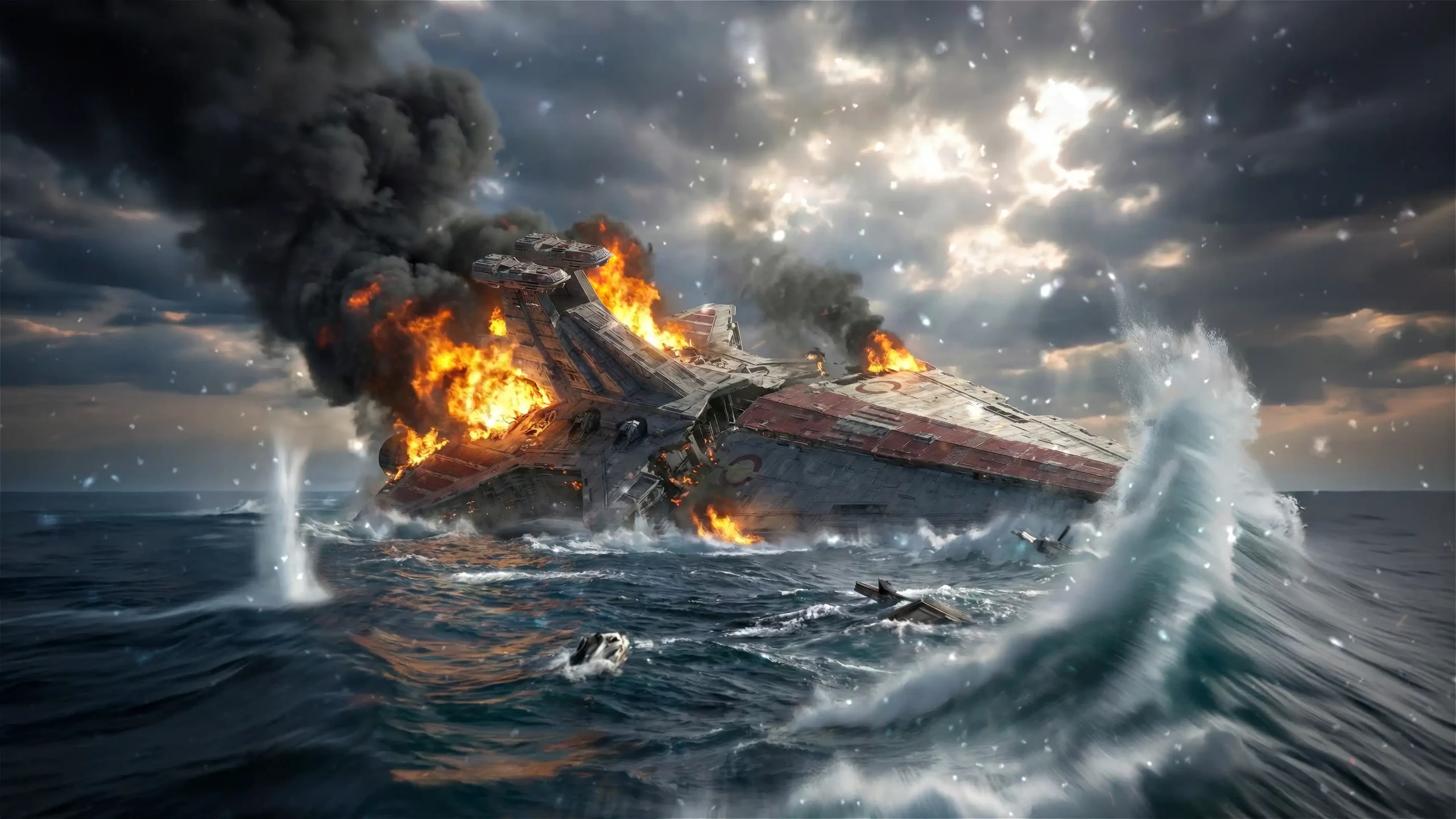 "The Clone Wars didn’t end with a treaty. They ended in fire and silence. Once the spearhead of the Open Circle Fleet, this Venator is now just a dying beast bleeding into a freezing sea. The Empire has no use for ghosts."